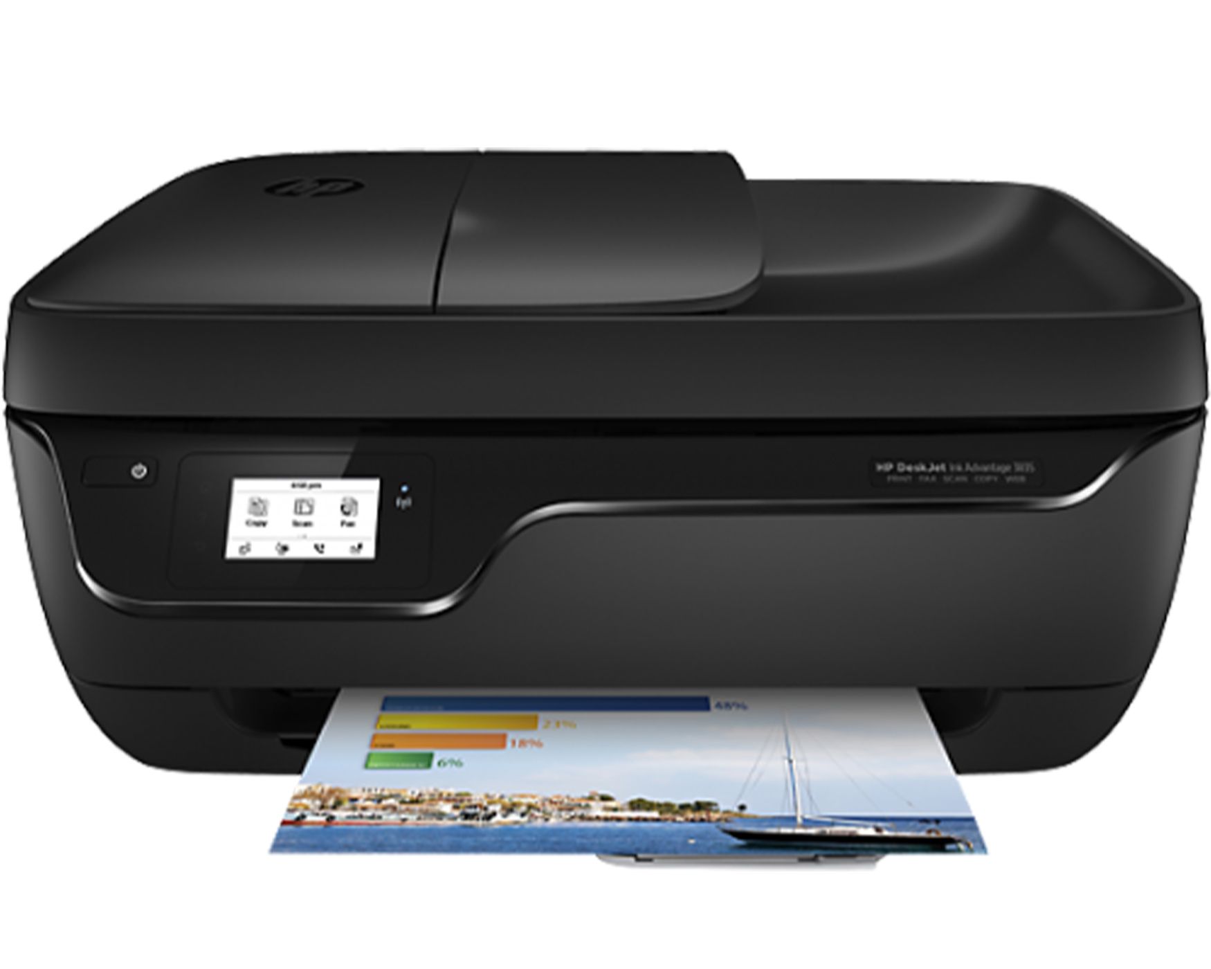 Máy in phun HP Deskjet Ink Advantage 3835 eAIO - D5R96B Là dòng máy in phun HP chính hãng đa năng: in , scan, copy, fax , tốc độ in trắng đen 20 trang/phút, in màu là 16 trang/phút, độ phân giải 4800x1200 dpi cho chất lượng bản in rõ nét, có kết nối wifi, thiết kế sang trọng, nhỏ gọn phù hợp với không gian làm việc của các văn phòng vừa và nhỏ.